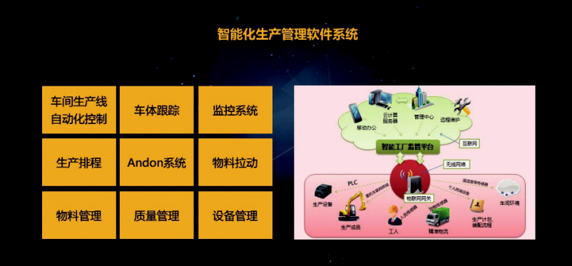 智能化制造系统是我们的制造业客户在其产品的制造过程中涉及的硬件、软件和人员所组成的一个将制造资源转变为产品的系统。它涉及产品生命周期( 包括市场分析、产品设计、工艺规划、加工过程、装配、运输、产品销售、售后服务及回收处理等) 的全过程或部分环节。其中,硬件包括智能化生产装备(智能化输送设备和环保节能前处理及涂装设备等)、智能化生产专机设备( 工业机器人集成与应用,工业用AGV等)、车间室内物流系统(自动化仓储系统)、计算机及工业物联网传感器系统等; 软件包括制造理论、制造技术( 制造工艺和制造方法等)、管理方法(精益制造)、制造信息化(MES 等)及其有关的软件系统等。