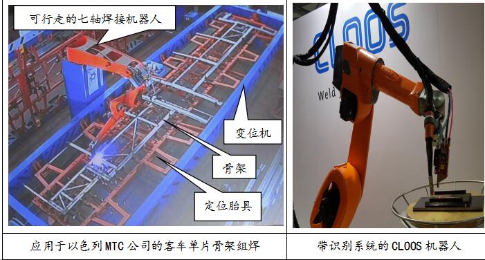 全球知名焊接机器人制造商主要有德国库卡(KUKA)、德国卡尔·克鲁斯(CLOOS)、瑞典ABB、日本安川(YASKAWA)、日本川崎(KAWASAKI)、日本发那科(FUNUC)、日本OTC等企业,其中德国卡尔·克鲁斯(CLOOS)公司在行业内素有顶级制造商的美誉,具有机器人、焊机、变位机、识别系统等全套功能模块的自主研发与生产能力,在以色列MTC集团的客车工厂已有成熟应用,国内的宇通客车也正在与其合作,但目前在国内无生产基地(北京有办事处),价格也遥遥领先。国内机器人近来发展也比较迅速,如时代、新松等,但处于发展的幼儿期,产品质量、性能、使用寿命等与国际品牌相比仍存在一定差距。