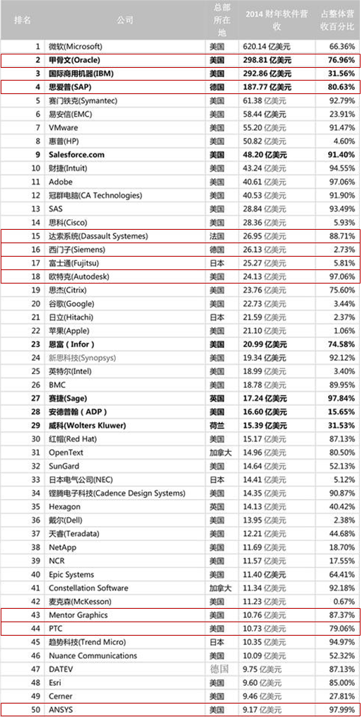 2016全球软件百强企业Top 50: