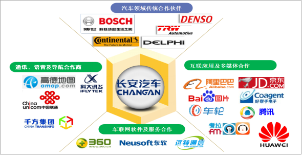 制造业转型之路不能一蹴而就、一哄而散。长安在发展过程中,先后与华为、西门子、博世、360公司、高德导航、科大讯飞、中国联通、远特TSP运营等形成了战略合作伙伴。 同时加强与ICT、互联网、通信、电子领域的企业跨界合作,研发智能网联技术和产品应用。